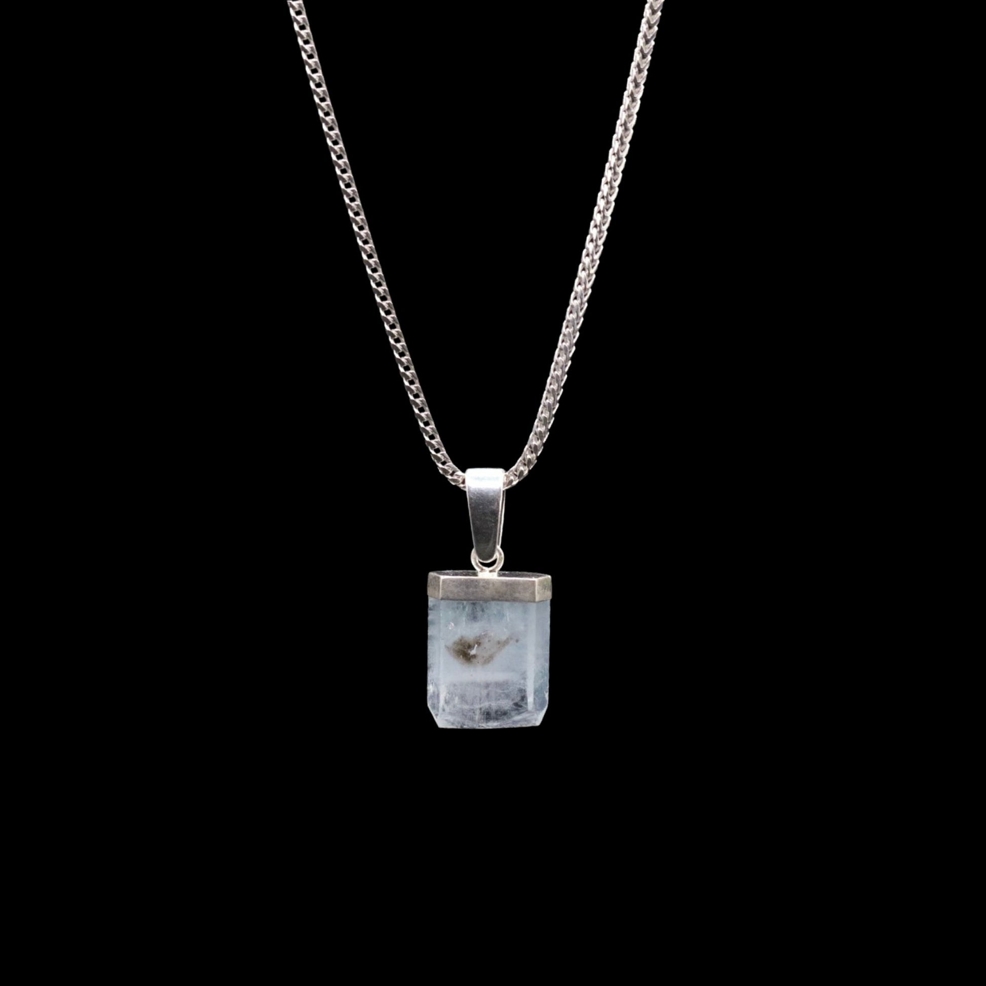 ♦ Natural Aquamarine pendant in 925 sterling silver custom bezel setting