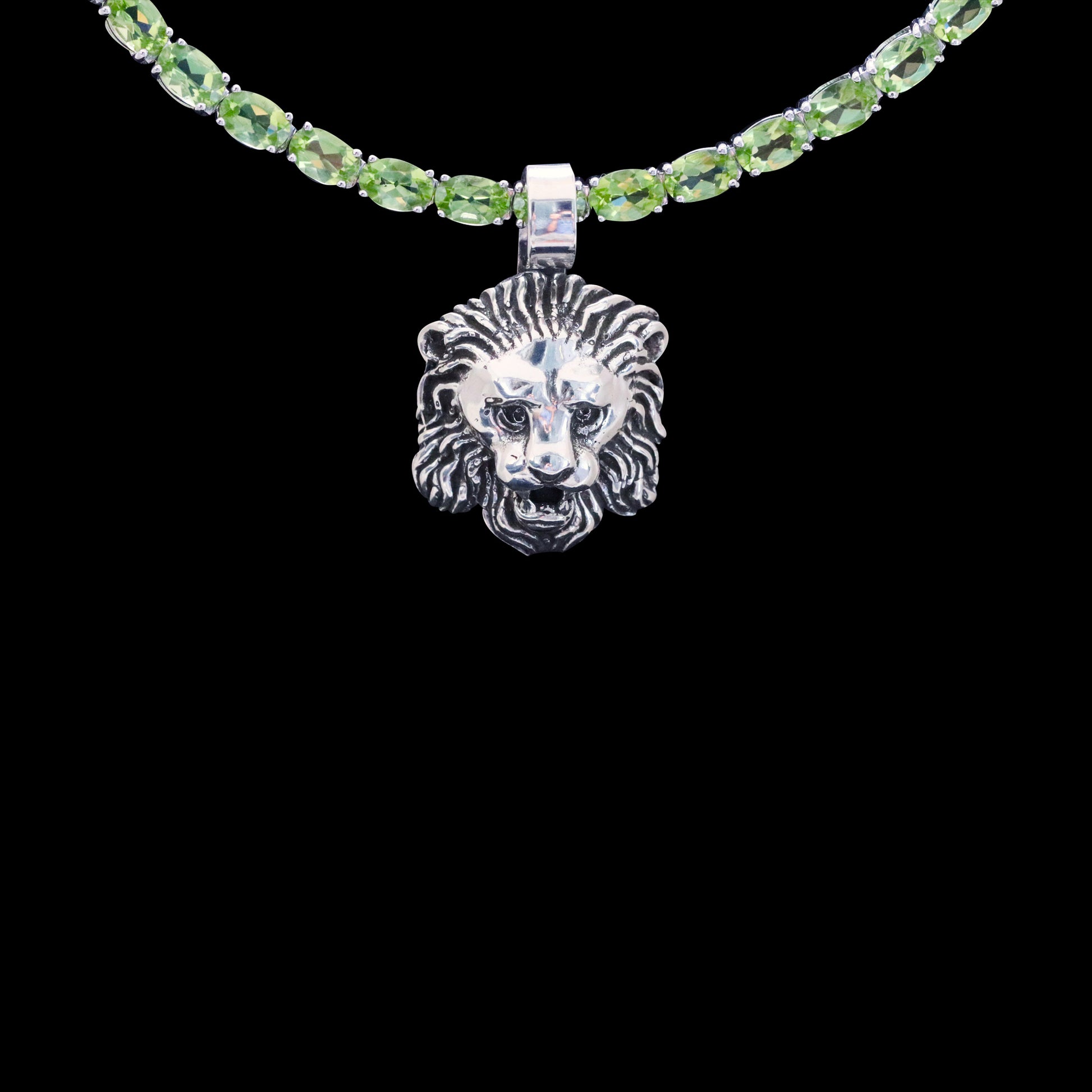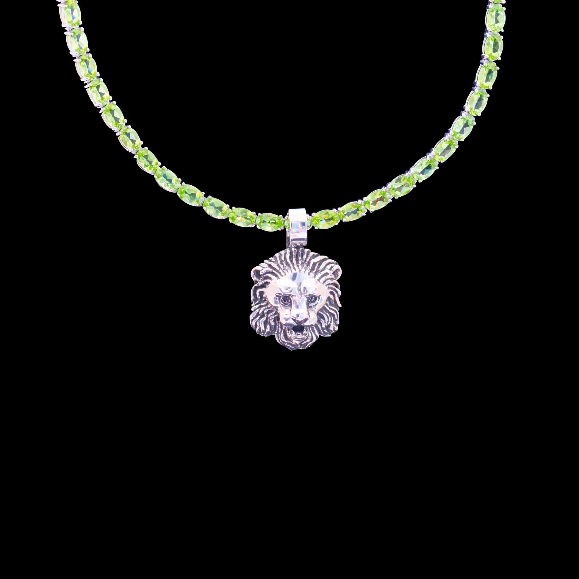 ♦ 32.50 ctw Natural Peridot and 925 sterling silver tennis necklace measures 6MM x 4MM x 16"