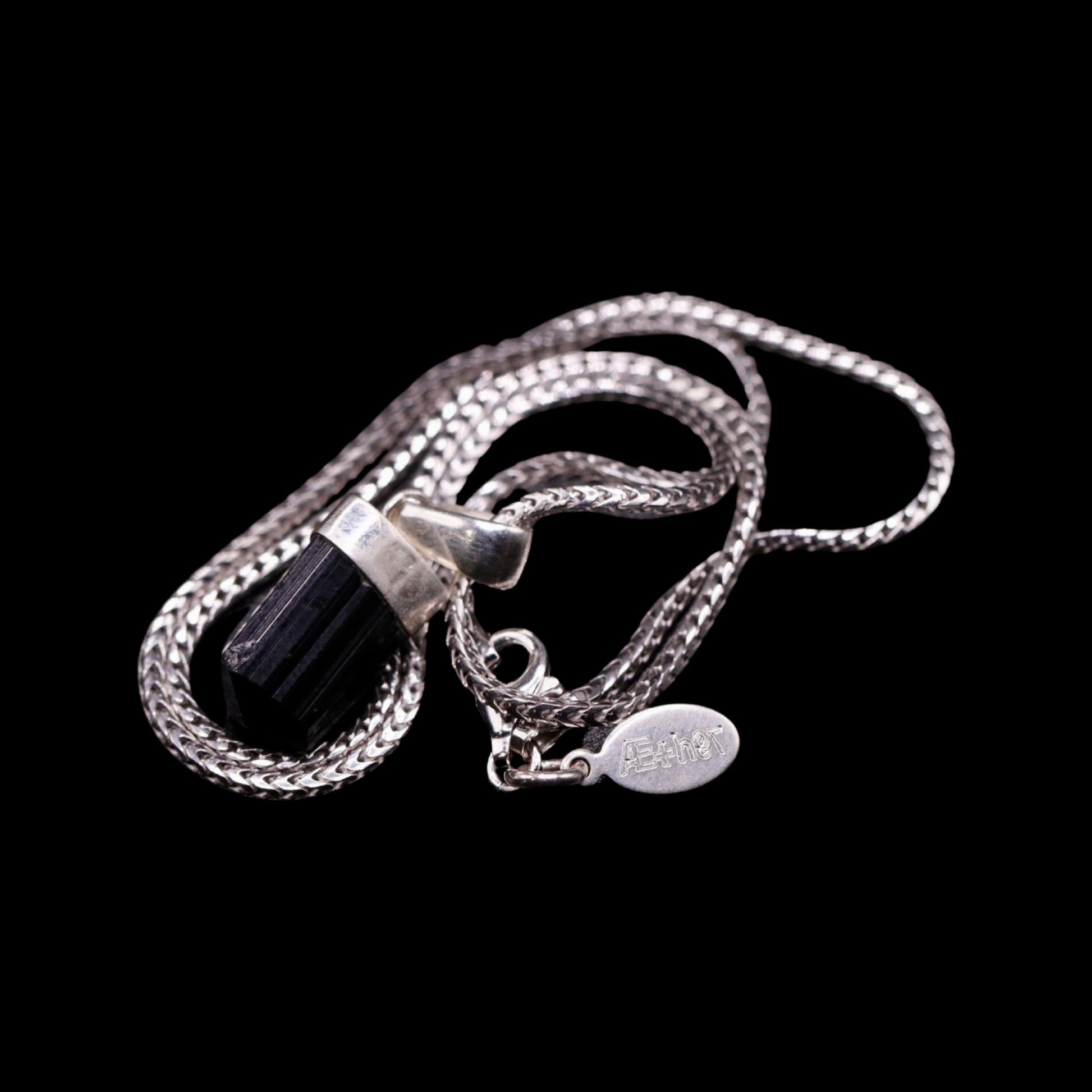 ♦ Black Tourmaline with Quartz inclusions in 925 sterling silver custom bezel setting