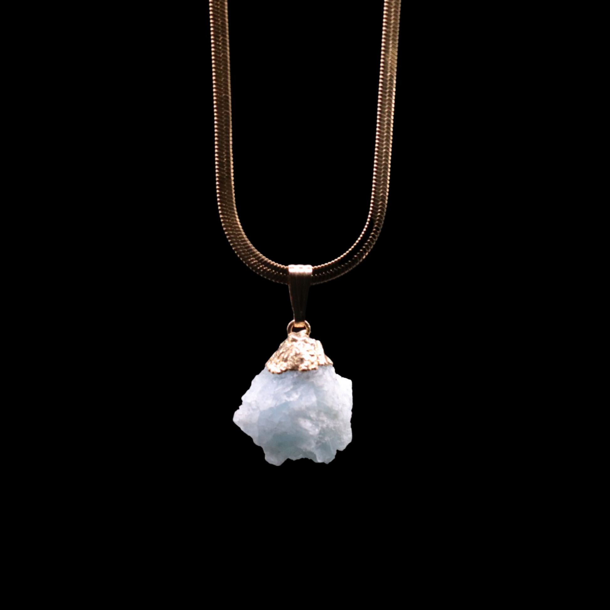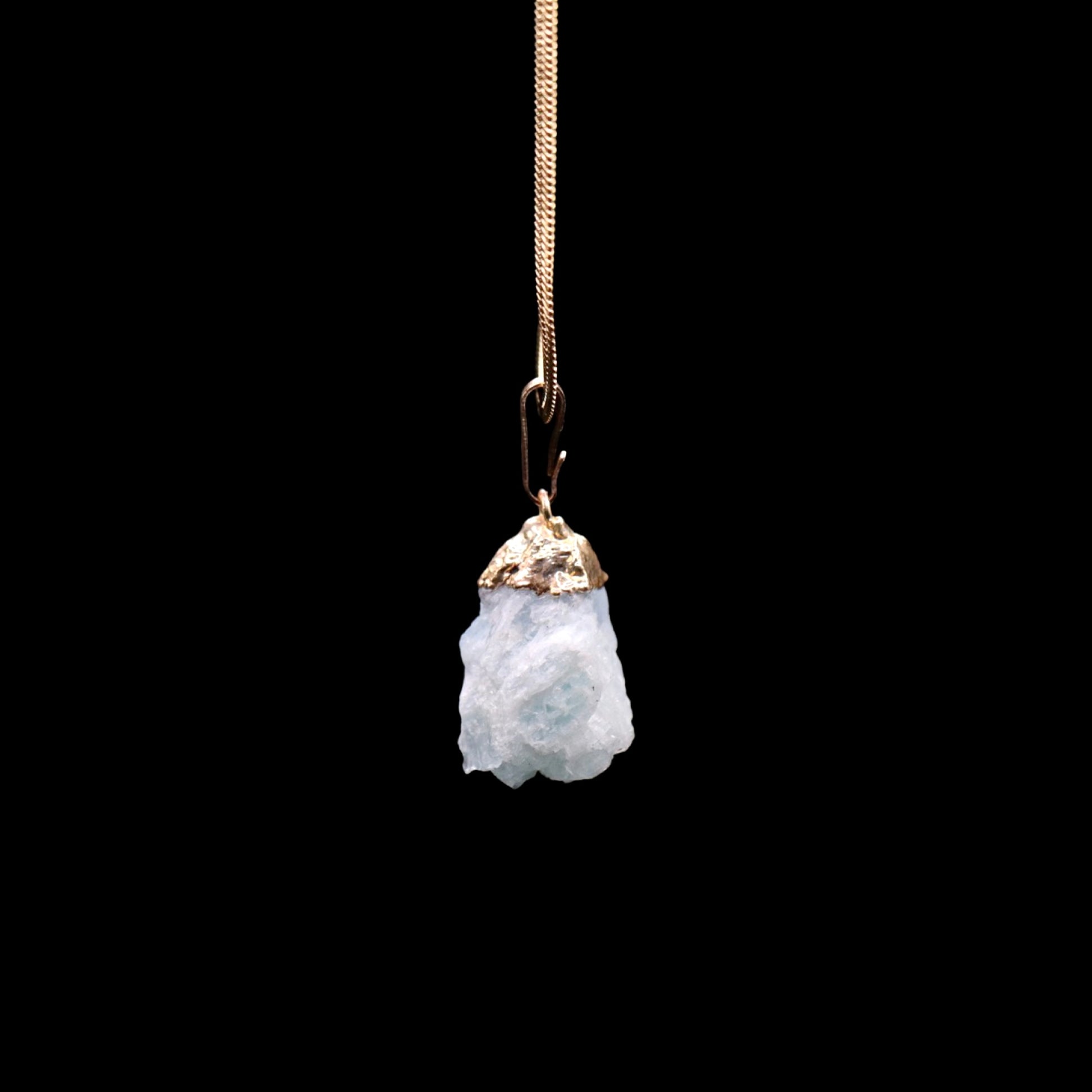 ♦ Natural Brazilian Aquamarine pendant finished in 24K gold electroplating